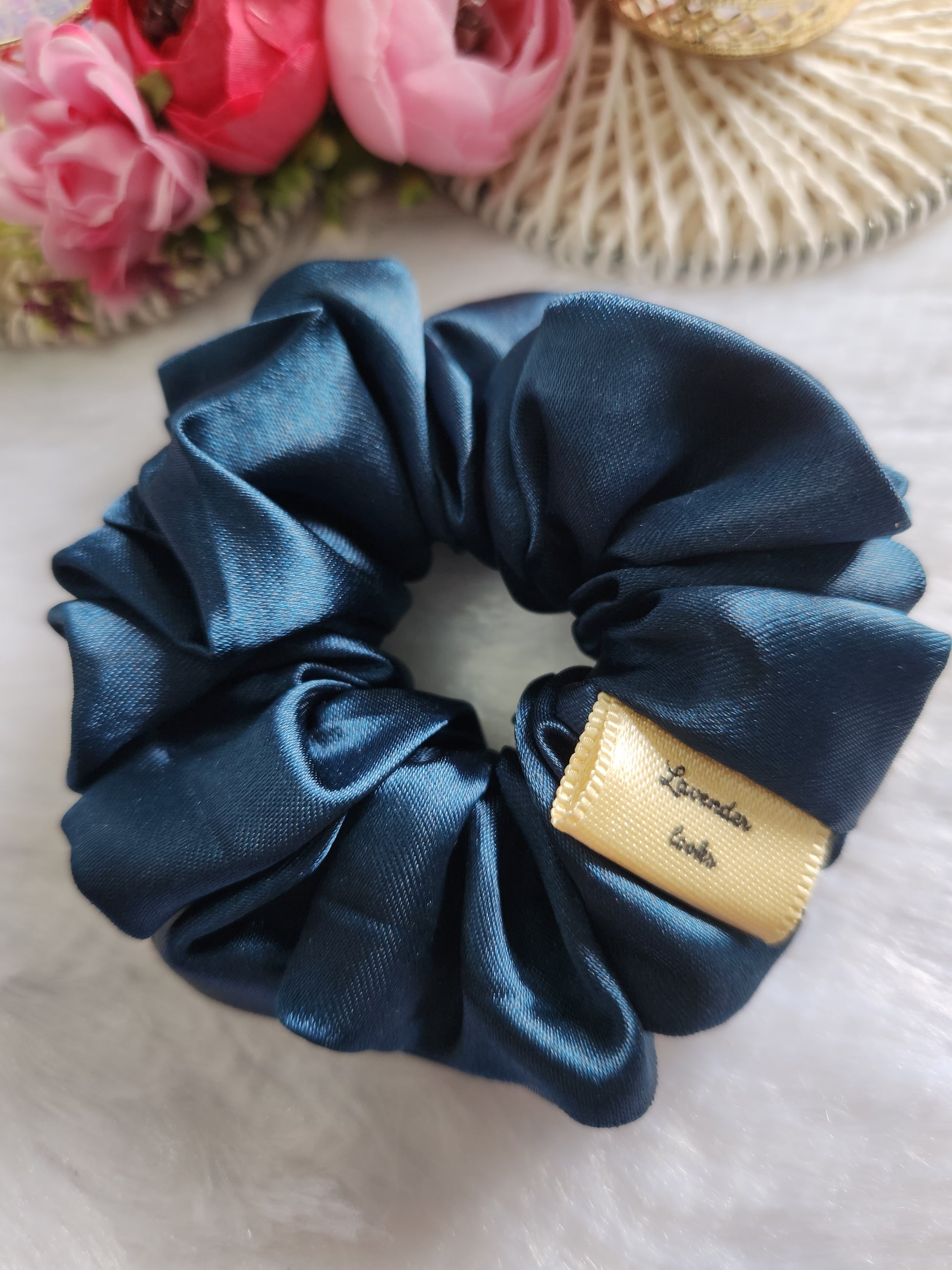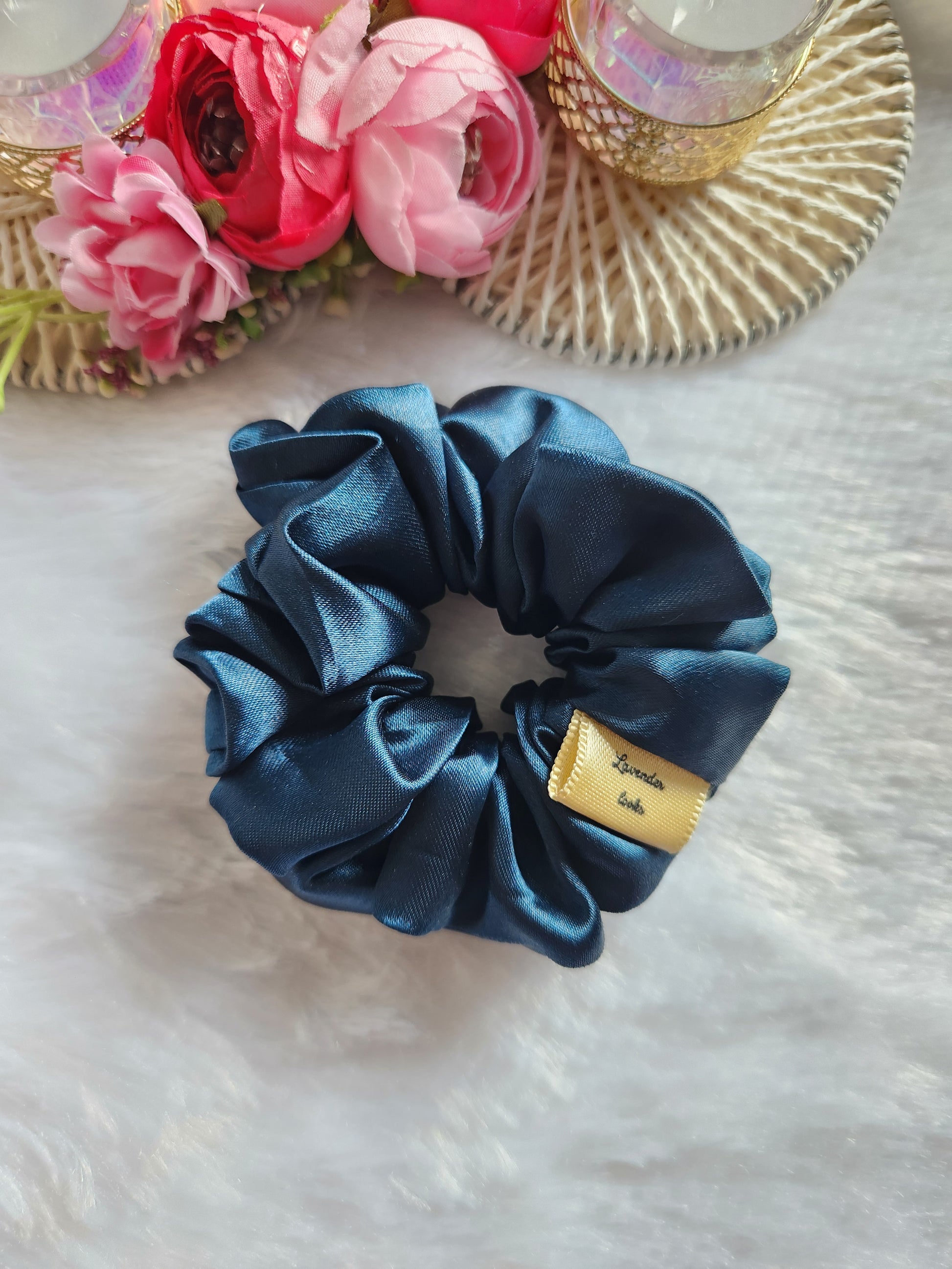 Elevate your hair routine with this luxurious satin scrunchie, designed to be both a stylish accessory and a gentle hair tie. The deep navy blue fabric has a beautiful, subtle sheen that catches the light, adding a touch of elegance to any hairstyle. It’s crafted from smooth, high-quality material that feels incredibly soft, helping to prevent tugging and hair breakage.
